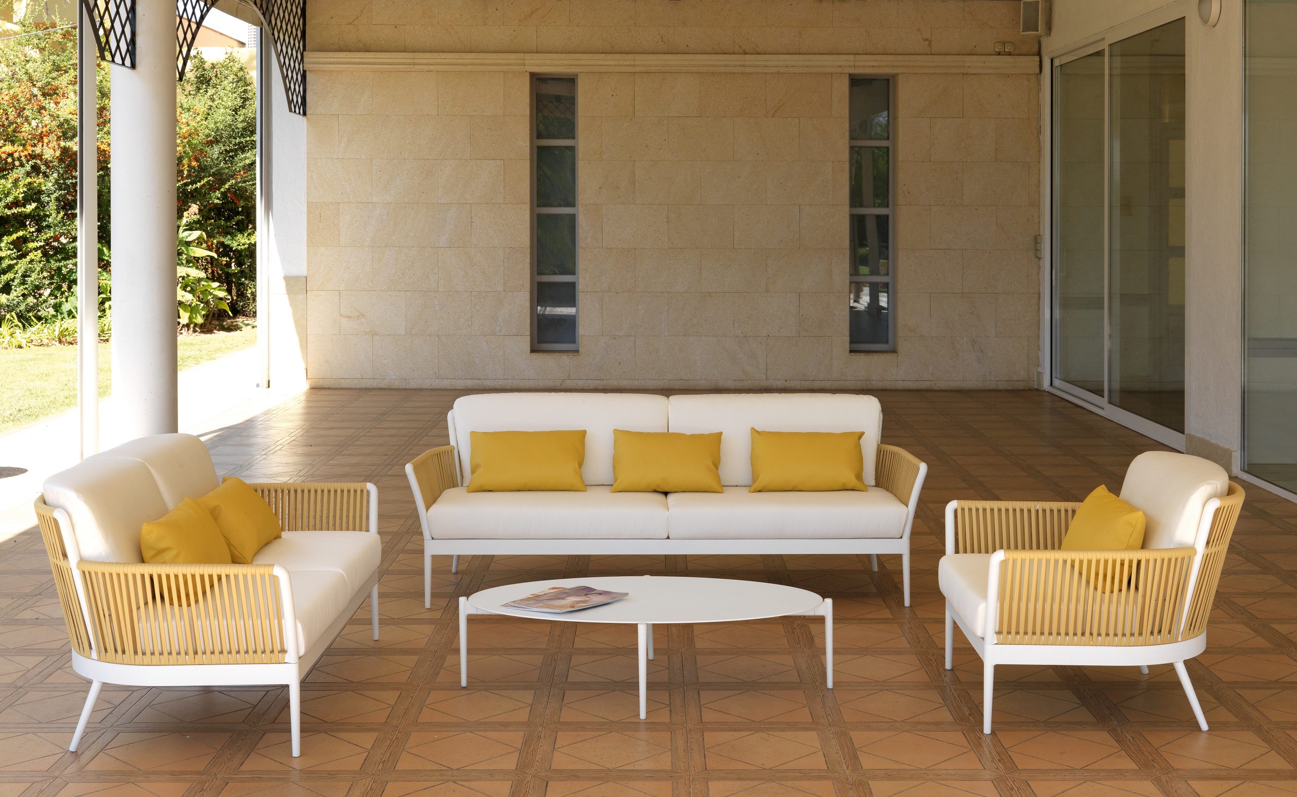 Conjunto Sofás en Cuerda de Fibra Sintética Amarilla