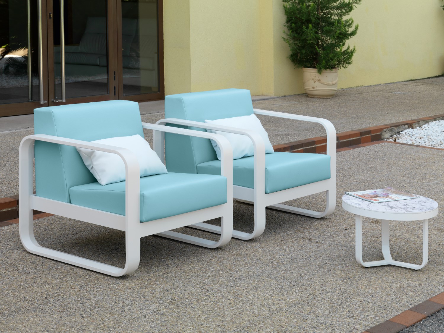Conjunto de Mesa Rectangular y Sillones de Aluminio