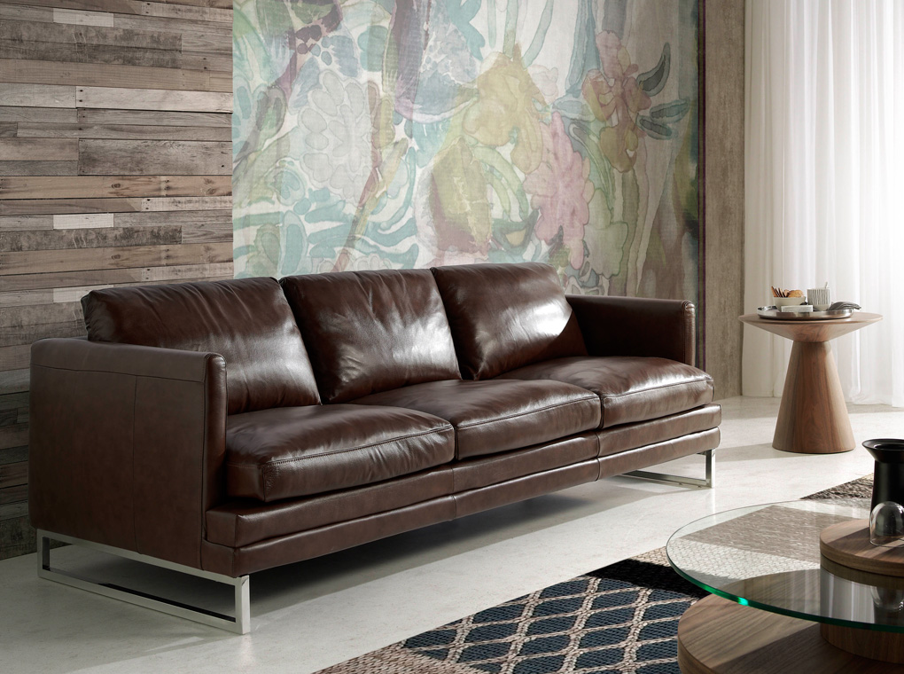Sofá 3 Plazas Tapizado en Piel con Patas de Acero Inoxidable