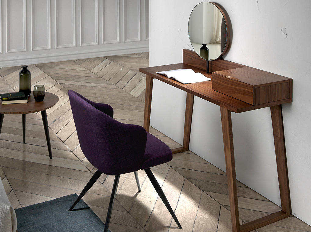 Silla de Madera Chapada de Nogal con Asiento Tapizado